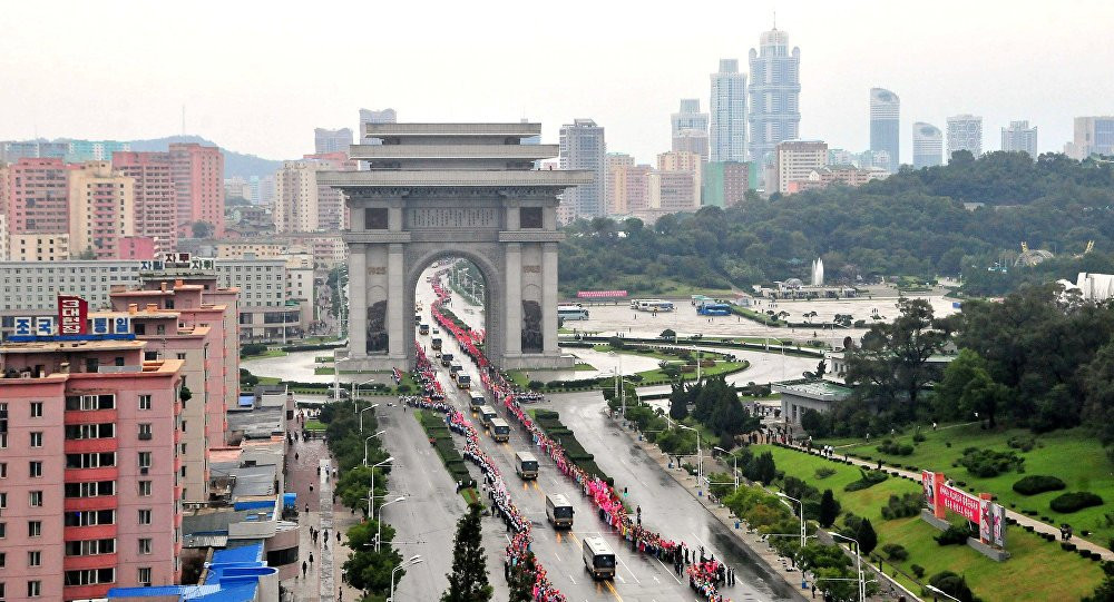 Đoàn xe chở những người tham gia vụ thử bom nhiệt hạch của Triều Tiên ở Bình Nhưỡng ngày 6/9. (Ảnh: Reuters)
