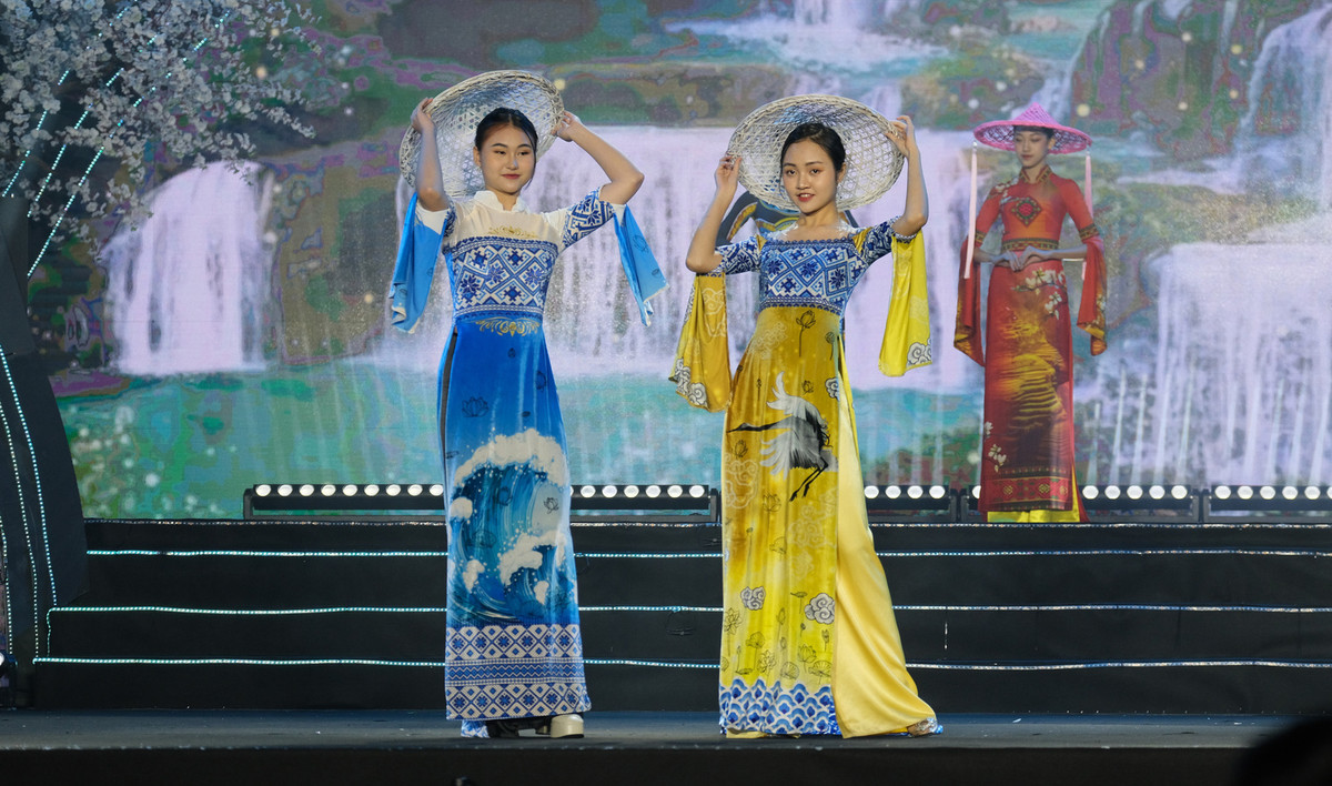 Màn trình diễn áo dài trong Ngày hội Du lịch Non nước Cao Bằng năm 2023 với chủ đề Non nước Cao Bằng - Xứ sở thần tiên, đã gây ấn tượng với công chúng.