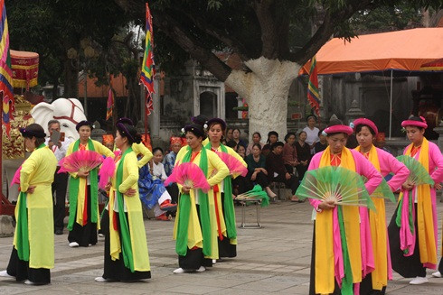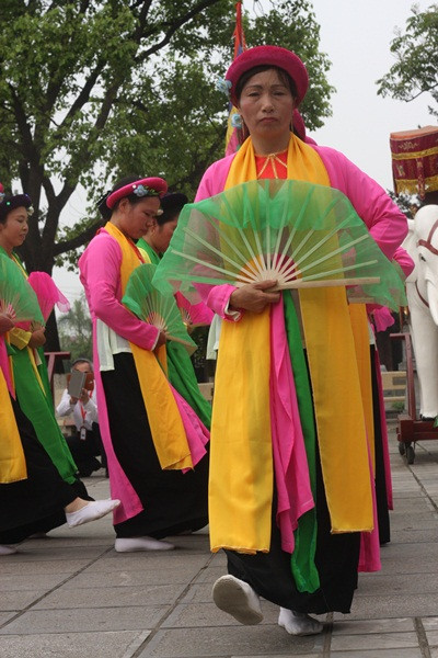 Ðể múa bát dật cần tối thiểu 16 người nữ với trang phục áo tứ thân đi giày vải múa bằng quạt, khăn lụa...