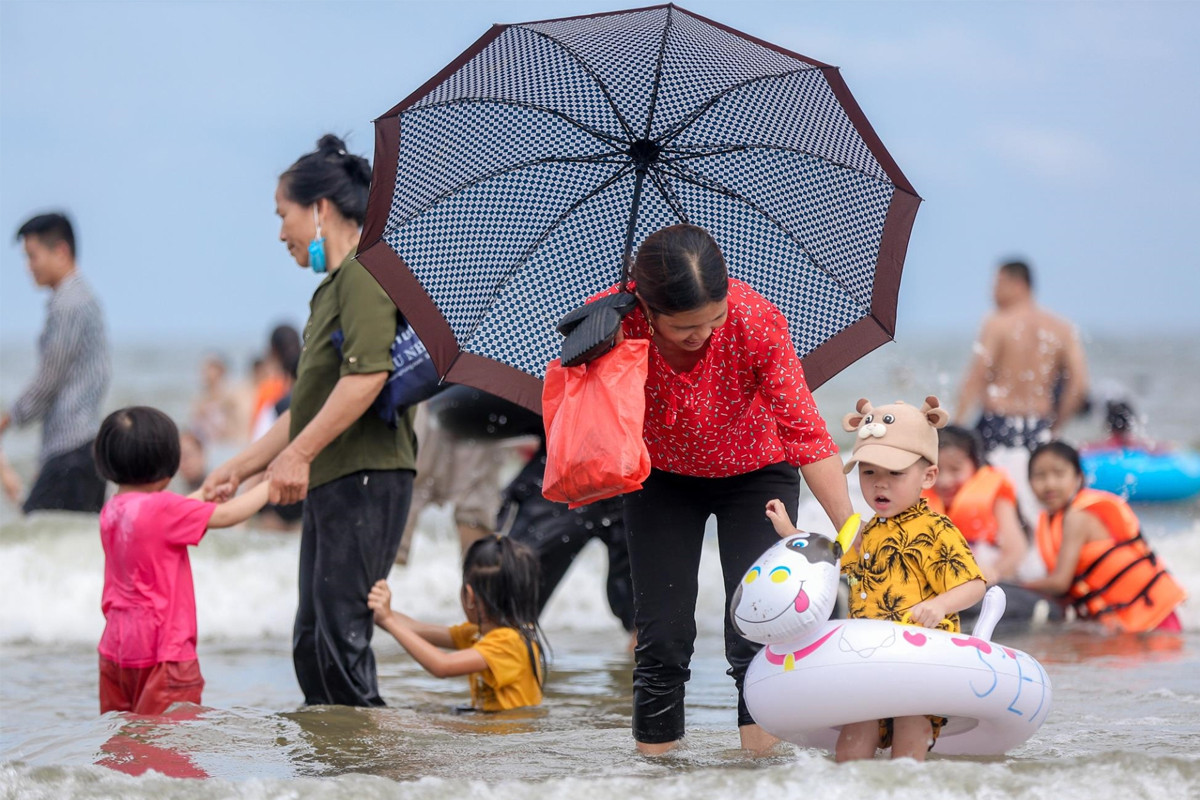 Nhiều người dân lựa chọn bãi biển Sầm Sơn (Thanh Hóa) là địa điểm vui chơi dịp nghỉ lễ 30/4-1/5. (Ảnh: Ngô Nhung)