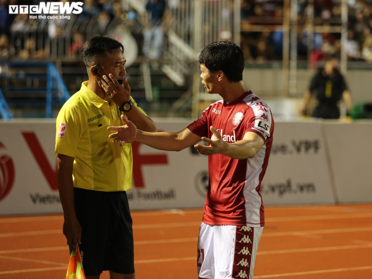 Đỉnh điểm tranh cãi diễn ra ở hiệp 1 khi trọng tài Trần Văn Trọng bỏ qua 2 tình huống mà cầu thủ Hà Nội FC dường như đã để bóng chạm tay. Các cầu thủ CLB TP.HCM phản ứng quyết liệt, nhưng trọng tài vẫn nói không. Công Phượng còn ra tranh cãi với trọng tài biên là bóng đã chạm tay.