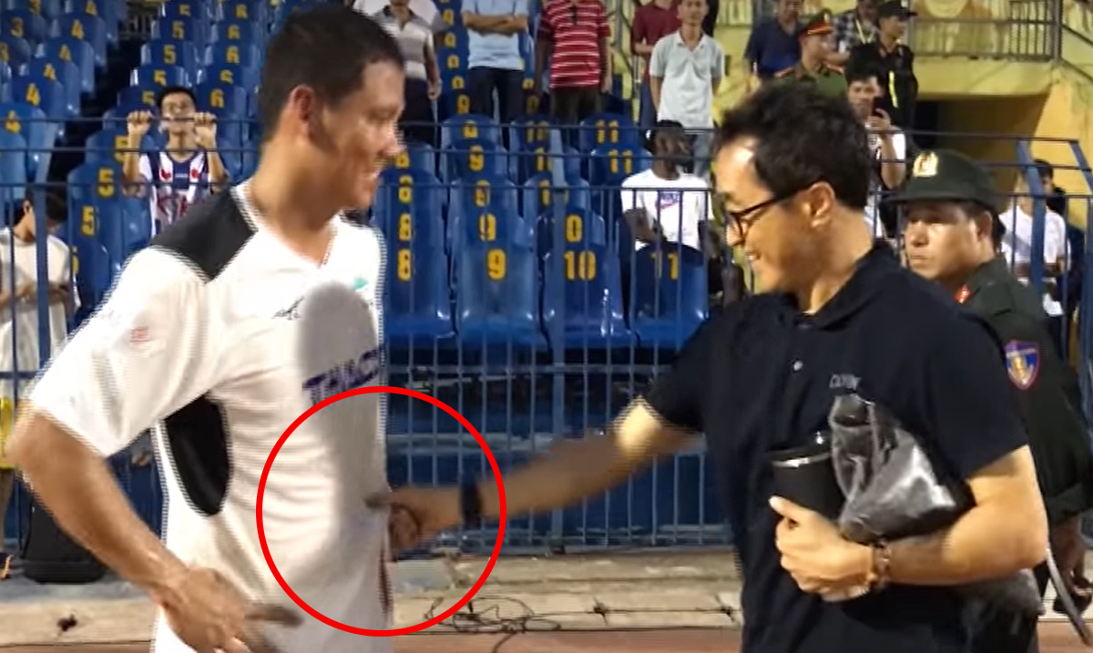 Ông gặp tiền đạo Anh Đức và bất ngờ với vòng eo không còn săn chắc của cầu thủ này sau thời gian nghỉ thi đấu.