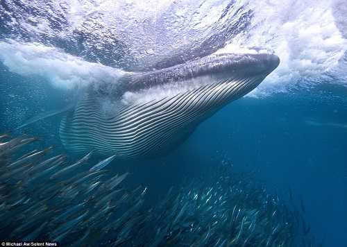 | Một con cá voi lao vào đàn cá mòi đang chen chúc |
