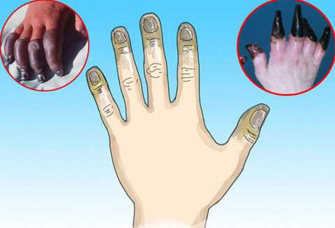 Đây là một hiện tượng hay gặp ở người có tuổi và mùa lạnh như bị thâm tím tay chân.. nhưng rất ít khi gặp ở mức độ hoại tử như thế này.
