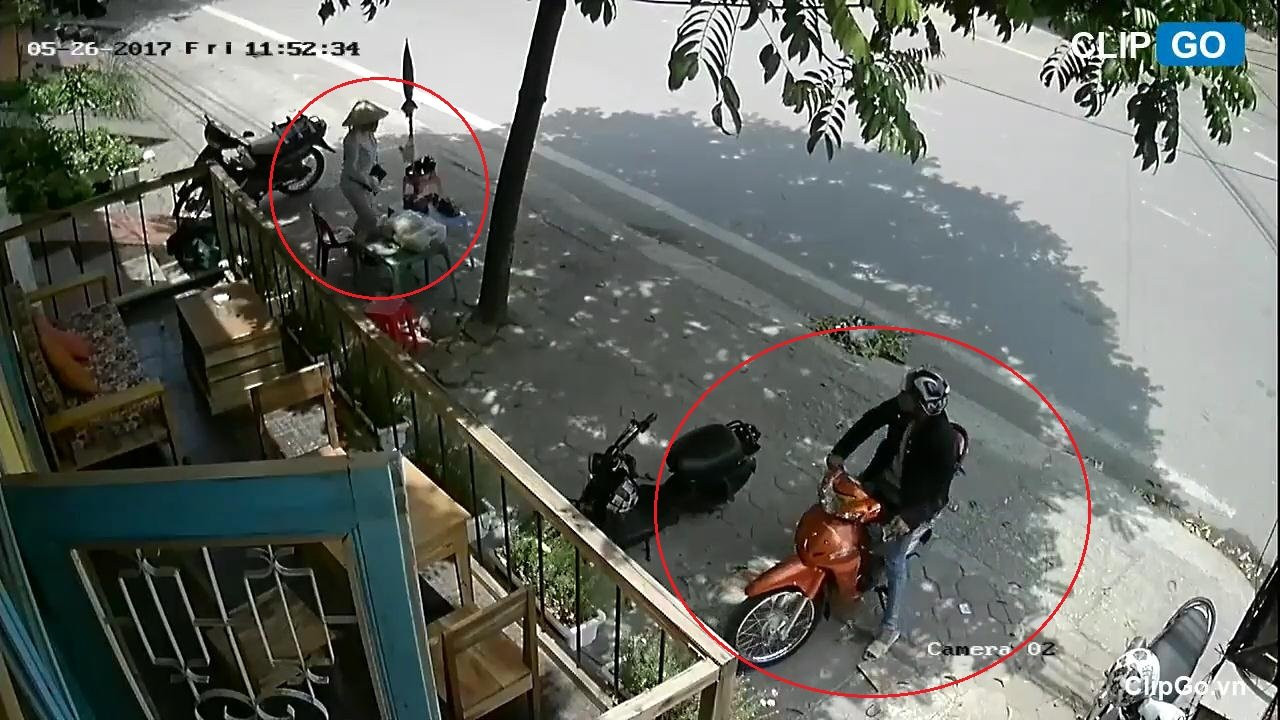 Trộm bẻ khóa xe máy nhanh như chớp trước mặt người bán nước