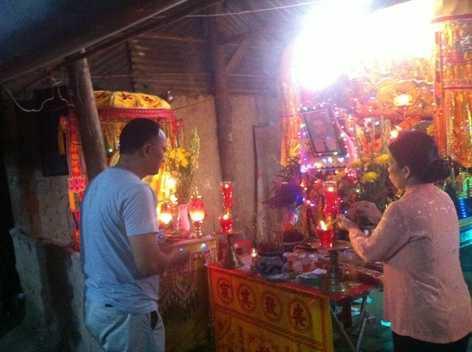 | Hiệp sỹ Minh Tiến thắp hương cho các nạn nhân xấu số tại huyện Củ Chi - Ảnh: Huy Phan |