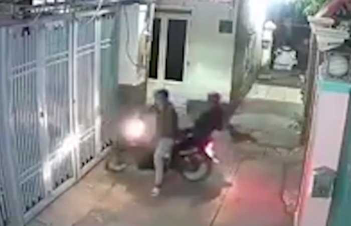 Hai thanh niên điều khiển xe máy đến trước cửa nhà rồi dùng dây kéo lê chú chó, rất may chủ nhà đã phát hiện buộc hai tên trộm hoảng hốt, chạy khỏi hiện trường.