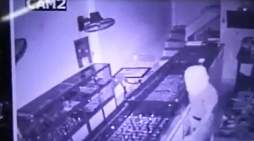 Camera giám sát của tiệm vàng đã ghi lại diễn biến tên trộm khoảng trên 30 tuổi, bịt khẩu trang, đeo găng tay, mặc bộ quần áo màu trắng và trên đầu trùm một chiếc quần lót. Hắn lân la tìm cách bịt hai chiếc camera khác để vô hiệu hóa sau đó trộm vàng.