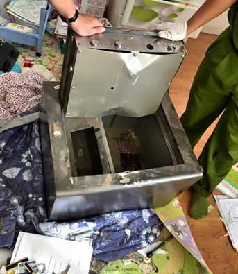 | Chiếc két sắt đã bị phá tung trong vụ đột nhập |