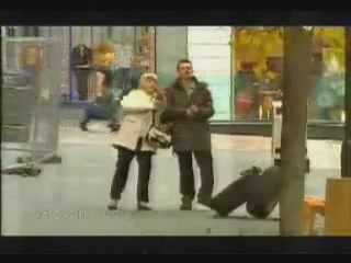 Trong trò đùa dạng prank, những vị khách tốt bụng không ngờ đến chiếc bánh xe ôtô nặng nề mà họ vác hộ người phụ nữ bị đau tay được lấy từ xe của cảnh sát.