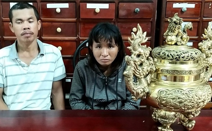 Chiều 11/3, Công an TP Biên Hòa, tỉnh Đồng Nai cho biết đơn vị vừa bàn giao Võ Văn Chiến (39 tuổi, ngụ Quảng Ngãi) và vợ là Đoàn Thị Cẩm Vân (39 tuổi, ngụ TPHCM) cùng tang vật là chiếc lư hương bằng đồng cho Công an huyện Đất Đỏ, tỉnh Bà Rịa – Vũng Tàu để điều tra, làm rõ hành vi trộm cắp tài sản.