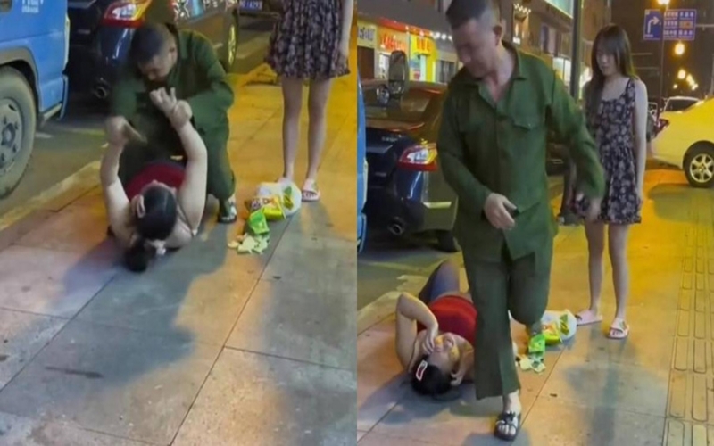 Trốn chồng đi ăn đêm, vợ béo phì bị đánh ngay giữa phố.