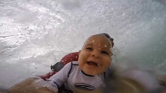 Thông thường những đứa trẻ 9 tháng tuổi mới chỉ biết bò trên sàn nhưng ông bố Jorge Tirado đã quyết định cho cậu con trai trải nghiệm cảm giác lướt sóng.