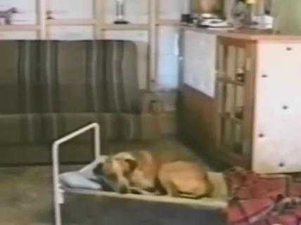 Sau khi có những động tác 'thư giãn', con chó lên giường 'kéo chăn lên đắp' và ngủ ngon lành.
