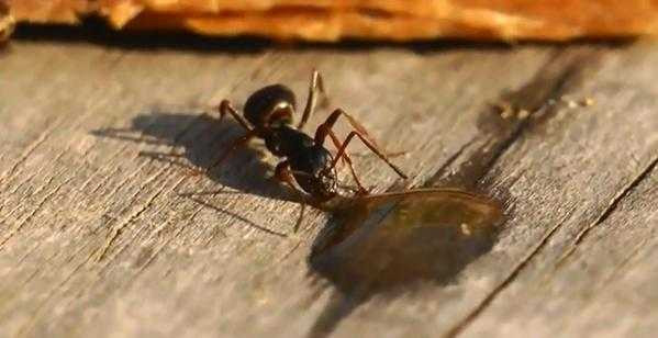 Sau khi tò mò nhấm nháp thử một giọt vodka trên sàn gỗ, chú kiến bắt đầu đi lảo đảo, quay vòng tròn và cuối cùng thì ngã gục.