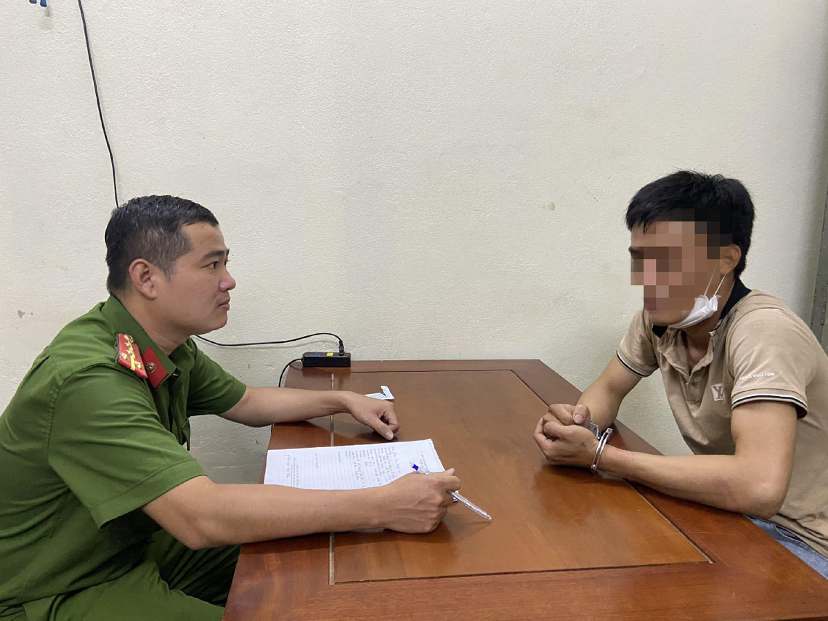 Cán bộ công an đang lấy lời khai của một trong hai kẻ trộm cắp vừa bị bắt giữ.