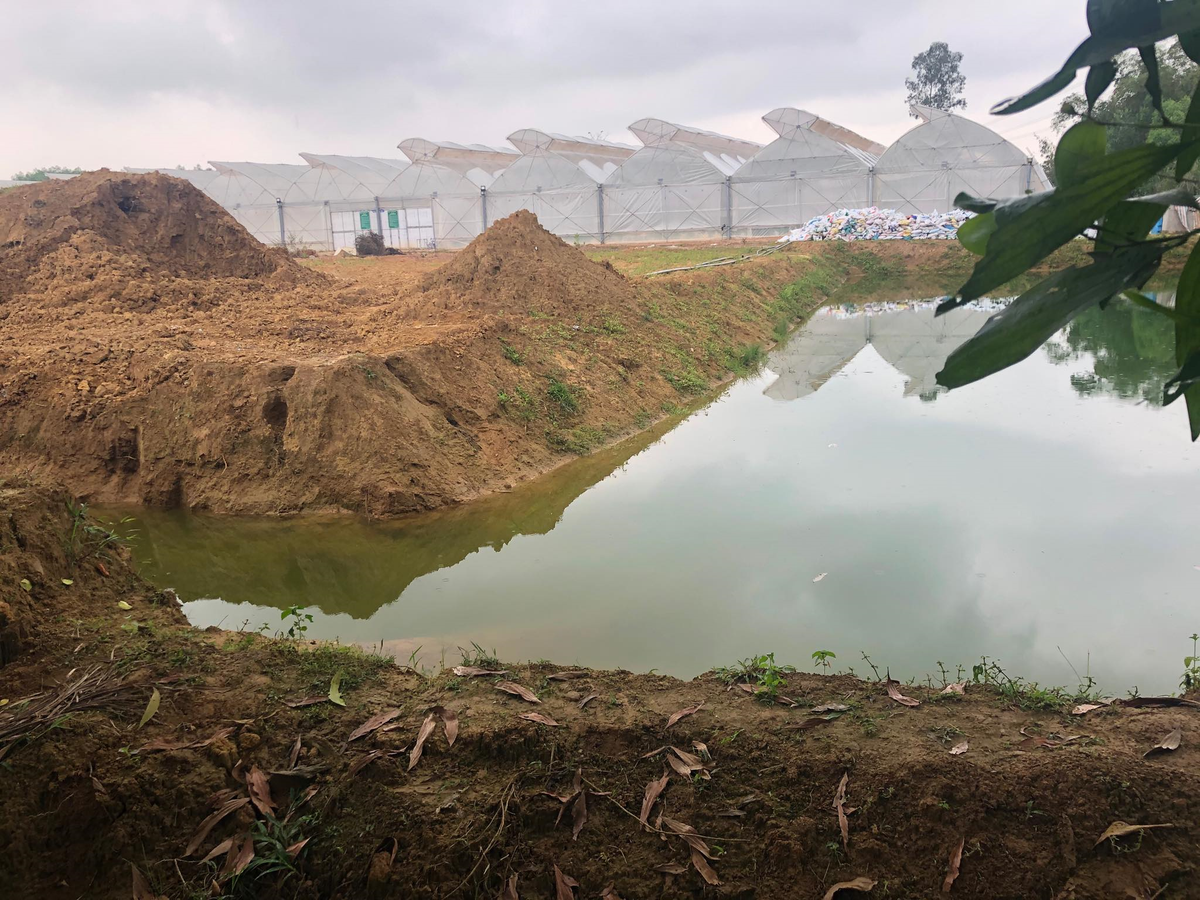 Theo ghi nhận, trại trồng dưa nằm ngay phía sau nhà bà Mảng và chỉ cách một khoảng đất nhỏ trồng keo tràm và một hồ nước. Tiến sâu vào trại dưa, chúng tôi thấy nguồn nước chảy qua nhà bà Mảng thải ra từ hồ nước nhân tạo. Thời điểm lúc ấy dù nước không được xả nhưng khu vực này vẫn bốc lên mùi thum thủm.
