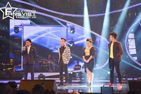 | Minh Quân (giữa) chia tay chương trình đầy nuối tiếc vì nhận được số lượng bình chọn thấp nhất. |