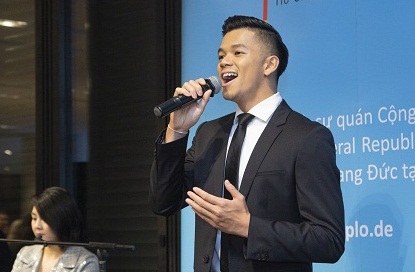 Ca sĩ Trọng Hiếu thể hiện quốc ca của Việt Nam và Đức tại sự kiện được tổ chức tai TP.HCM.