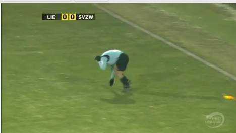 (VTC News)-Ở trận đấu giữa Lierse và Zulte Waregem (Bỉ), trọng tài biên Frederick Geldhof đã bị CĐV triệt hạ bằng một miếng bìa các tông. Rất may, ông chỉ bị thương nhẹ.