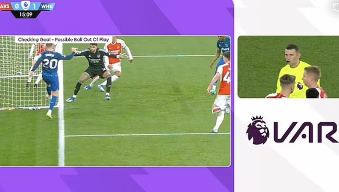 Trong tình huống West Ham ghi bàn mở tỉ số ở trận gặp Arsenal, trọng tài Michael Oliver xác nhận bàn thắng hợp lệ. Hình ảnh quay chậm cho thấy có thể bóng ở ngoài cuộc khi cầu thủ West Ham cố gắng kiến tạo cho đồng đội. VAR vào cuộc nhưng các trợ lý xem băng hình hoàn toàn trở nên vô dụng vì chẳng có góc quay nào thể hiện được rõ đúng sai. Theo nguyên tắc, họ buộc phải tôn trọng quyết định ban đầu của trọng tài chính.