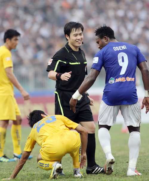 | Trọng tài chính Đinh Hải Dương điều khiển trận Thanh Hóa - HAGL ở vòng 3 V-League 2013. |