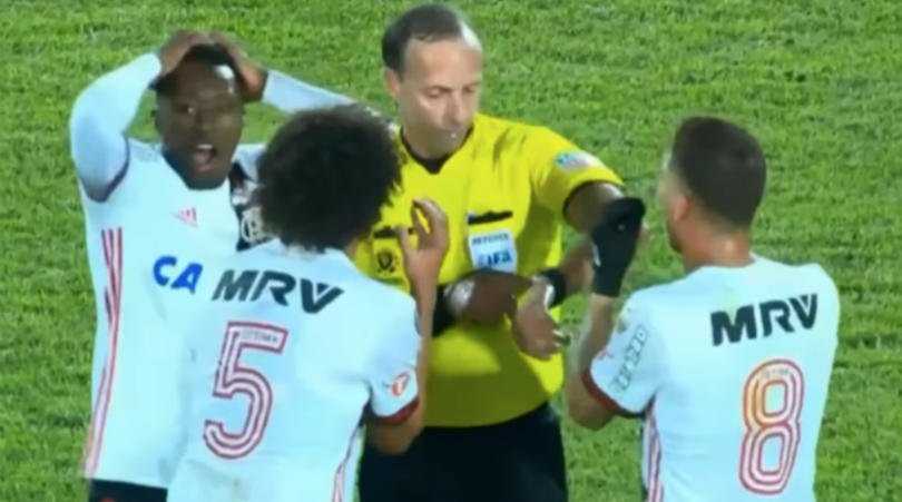 Các cầu thủ và ban huấn luyện Flamengo phản ứng dữ dội nhưng không thể thay đổi được quyết định của trọng tài.