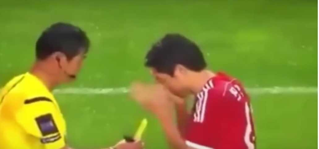 Khi thổi phạt cầu thủ, một trọng tài Trung Quốc đã làm điều ít ai nghĩ tới khi đưa ra 2 chiếc thẻ: vàng và đỏ để cho cầu thủ bị thổi phạt lựa chọn.
