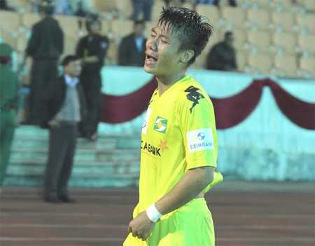 2. Cầu thủ SLNA khóc vì trọng tài Dũng