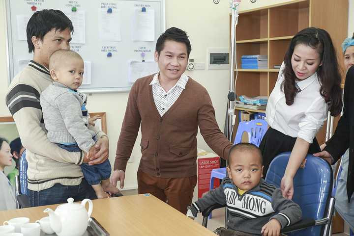 Ngoài những phần quà gửi tới các bệnh nhi, ca sỹ Trọng Tấn còn dành nhiều phút giây chia sẻ, động viên tinh thần của các em và gia đình tại đây.