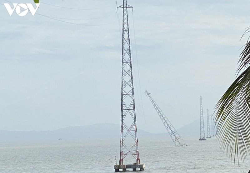 Theo đó, trụ điện số 25 trên tuyến đường dây 22kV vượt biển ra đảo bị nghiêng do phương tiện lưu thông trên biển đâm vào.