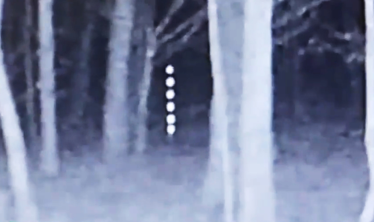 Dải 6 khối ánh sáng thẳng đứng nhảy len lỏi qua những tán cây, thân cây với tốc độ cực nhanh, vật thể này cũng không hề chạm mặt đất. (Ảnh: UFO Sightings Daily)