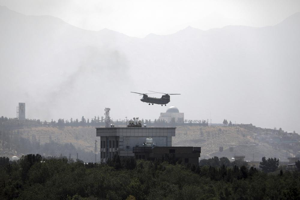 Theo phóng viên AP, có ít nhất hai trực thăng vận tải quân sự CH-47F Chinook xuất hiện trên nóc Đại sứ quán Mỹ ở Kabul chỉ vài giờ sau khi một đoàn xe ngoại giao được hộ tống vũ trang rời khỏi vùng xanh xung quanh đại sứ quán.