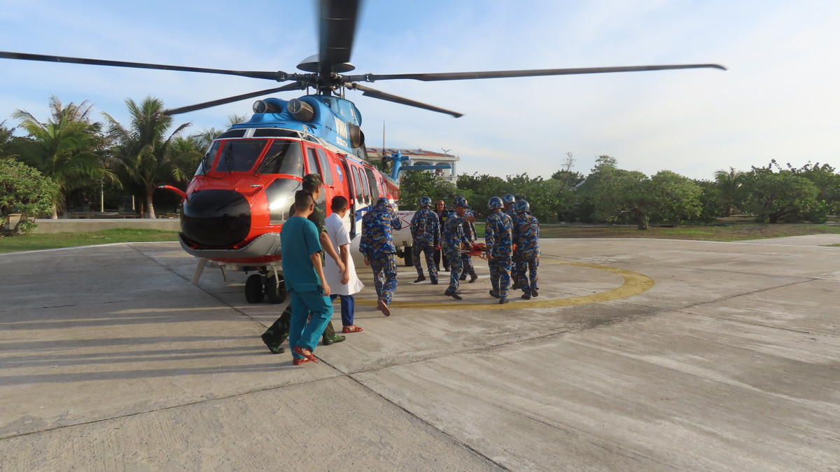 Ngày 4/6, trực thăng EC-225 mang số hiệu VN 8619 của Binh đoàn 18 đã đưa một ngư dân từ đảo Song Tử Tây về Bệnh viện 175 để tiếp tục điều trị.