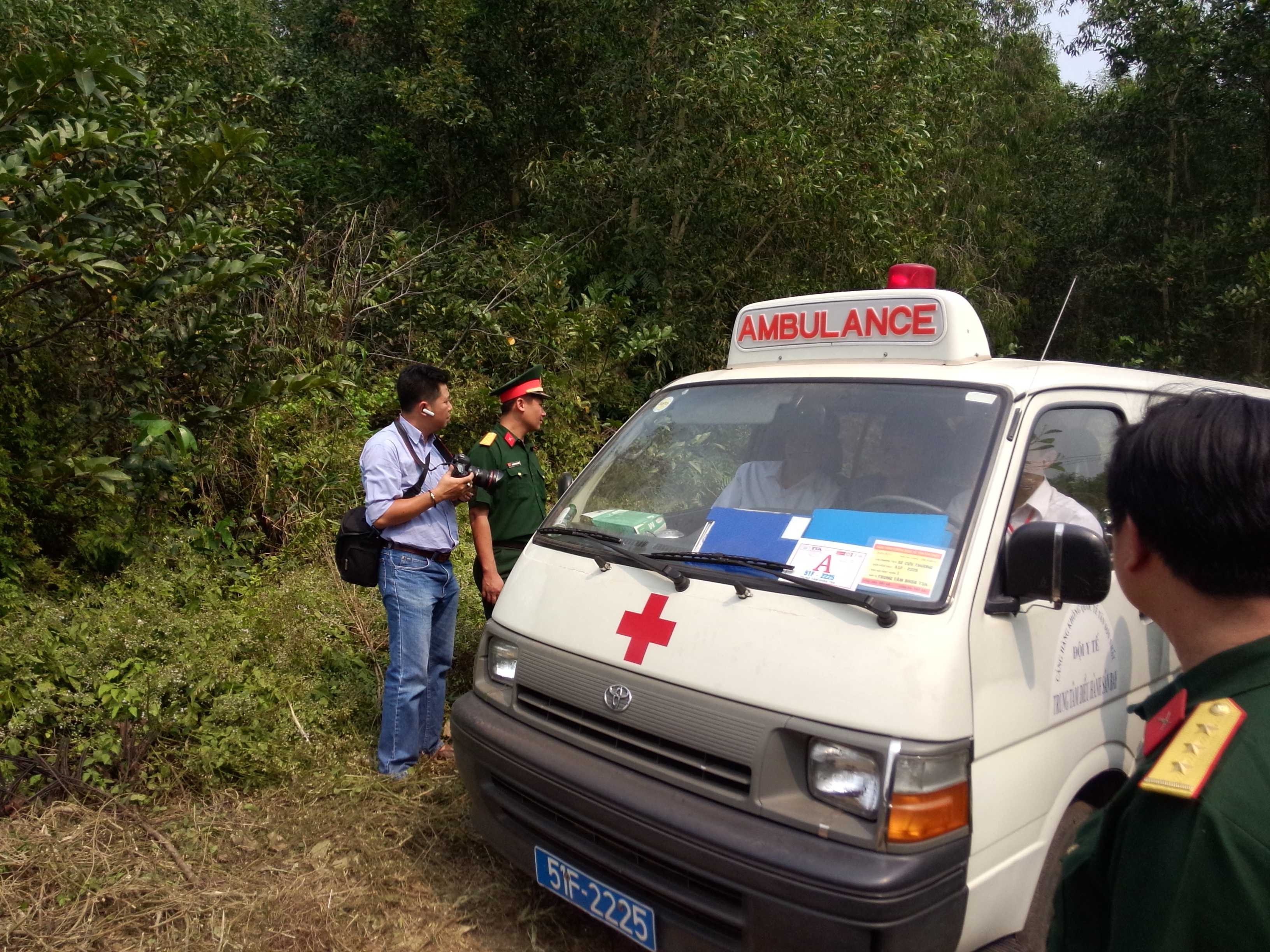 | Xe cấp cứu được điều động đến hiện trường. (Ảnh: Phan Cường) |