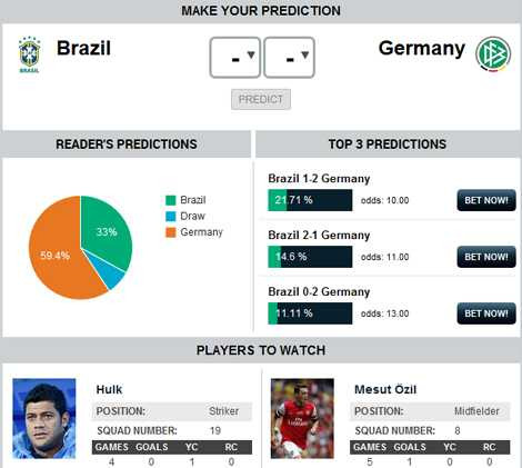 1' Brazil có 3 thay đổi ở đội hình xuất phát. Dante đá thay Thiago Silva. Oscar đá chính từ đầu. Trong khi Đức giữ nguyên đội hình như trận tứ kết.