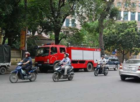 An ninh trong khu vực này được thắt chặt khi hàng chục cảnh sát từ các lực lượng bảo vệ, CSGT, tự vệ... được điều động để giữ gìn trật tự. Cách cổng Tòa không xa, một chiếc xe chữa cháy chuyên nghiệp cũng được điều động để bảo vệ phiên tòa.
