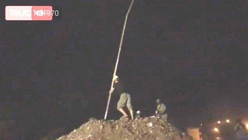 21h đêm 3/8, lũ về trong đêm tại thị trấn Mù Cang Chải - Yên Bái, bộ đội công binh phá khối đá lớn tạo dòng thoát lũ.