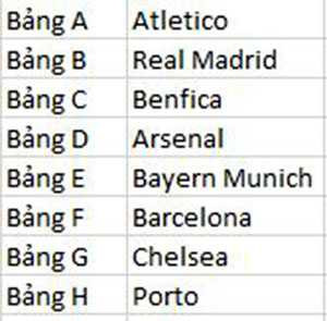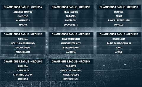 | 8 bảng đấu của Champions League năm nay |