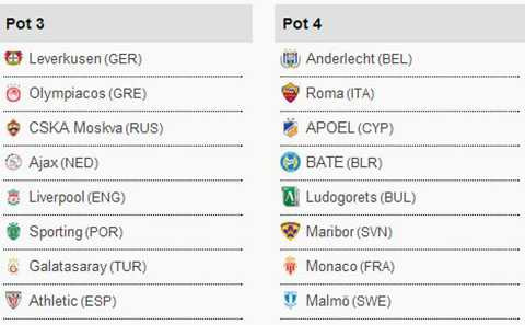 32 đội bóng lọt vào vòng bảng Champions League 2014-2015