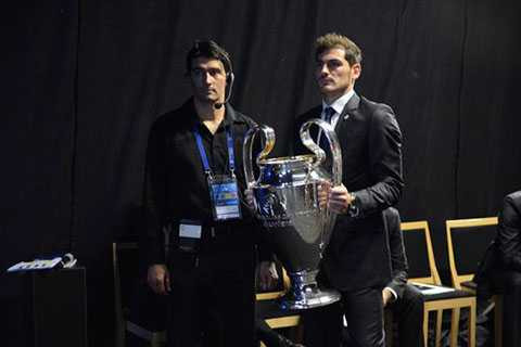 22h54: Thủ quân Real Madrid Iker Casillas xuất hiện với chiếc cúp bạc Champions League trên tay. Anh cũng sẽ là người bốc thăm phân bảng cho nhóm hạt giống.