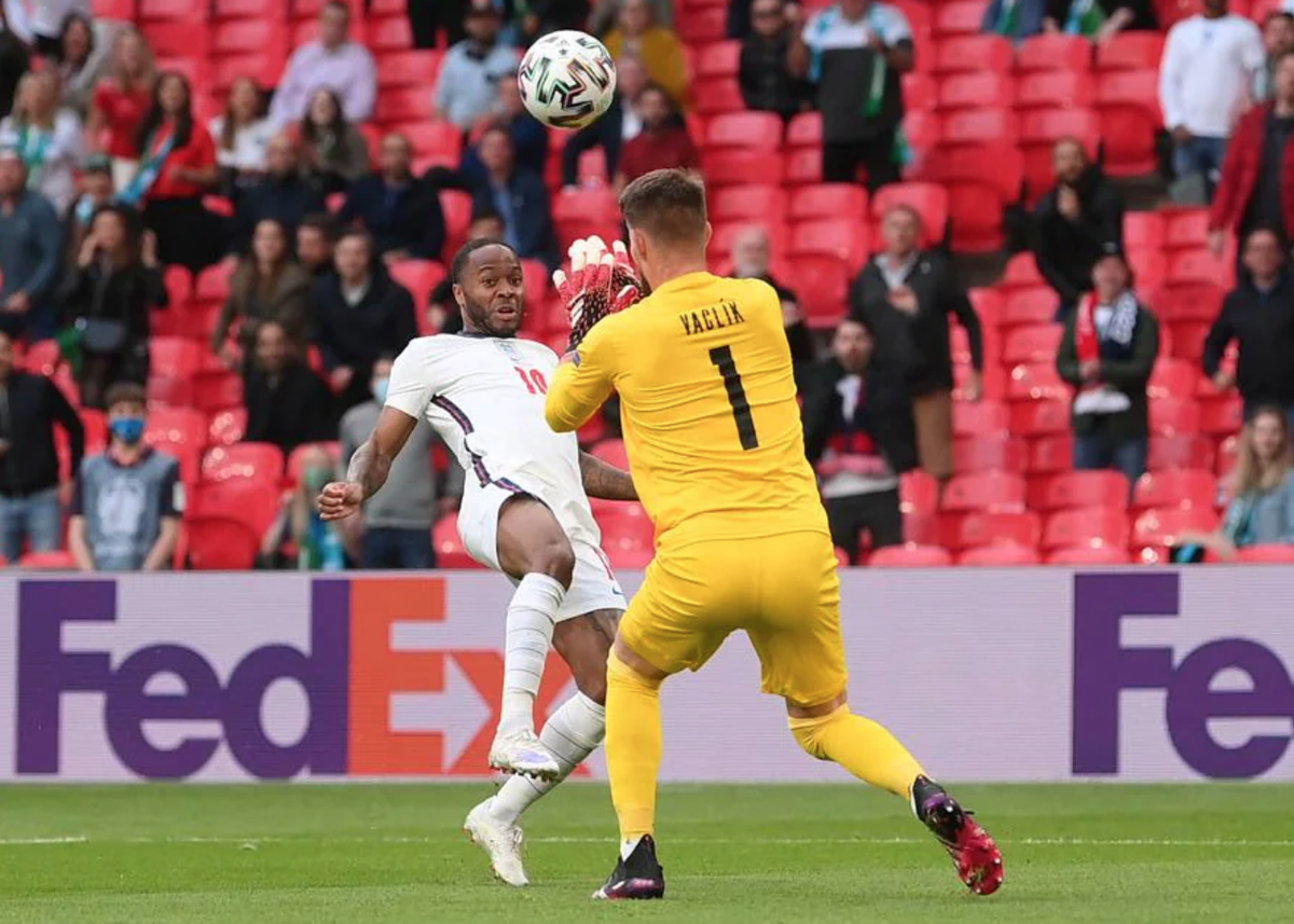 2' Bóng chạm cột dọc khung thành Cộng hoà Séc. Sterling thoát qua cái bóng áo đỏ cuối cùng, bấm bóng vượt tầm khống chế thủ môn CH Séc. Tiếc là cột dọc đã từ chối bàn thắng của Sterling.