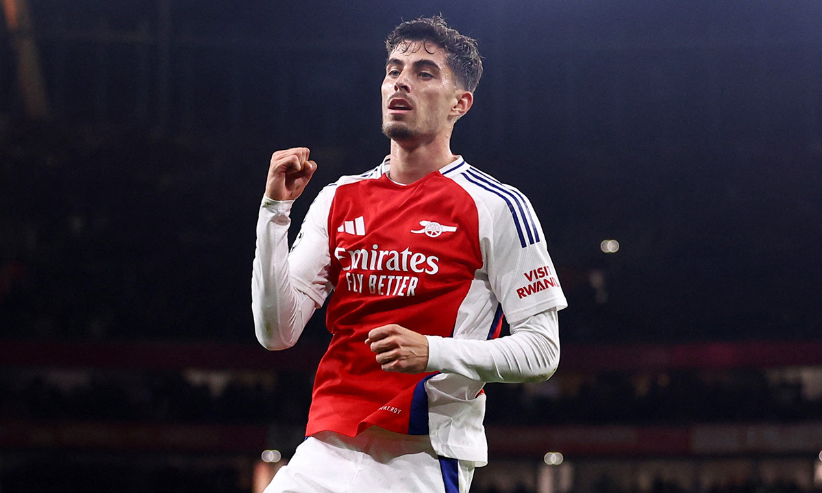 Saka cướp bóng và chuyền cho Havertz. Tiền đạo người Đức không phối hợp với Jesus. Anh tự xử lý và dứt điểm tung lưới Southampton.