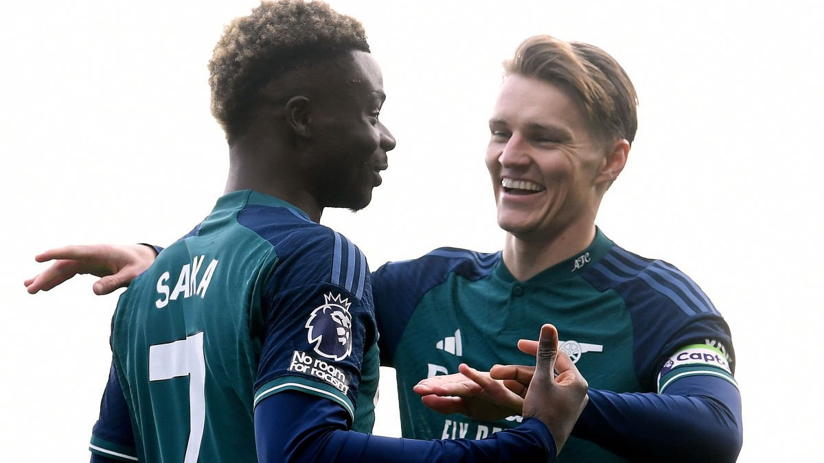 Arsenal: David Raya (22), Jakub Kiwior (15), Gabriel Magalhaes (6), William Saliba (2), Ben White (4), Kai Havertz (29), Declan Rice (41), Martin Odegaard (8), Gabriel Martinelli (11), Eddie Nketiah (14), Bukayo Saka (7)