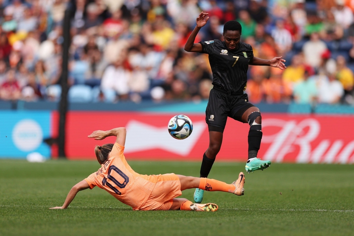 Kgatlana vượt qua hậu vệ Hà Lan và dứt điểm ở góc hẹp nhưng chỉ giúp Nam Phi có phạt góc.