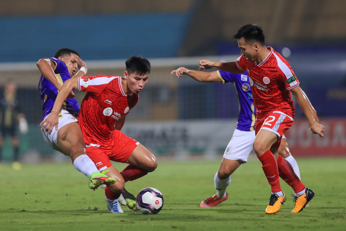 Hàng phòng ngự Hà Nội FC đang chơi tốt để ngăn cản áp lực của Viettel.