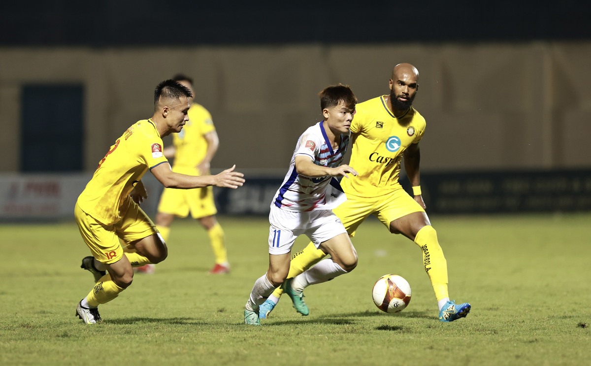 Đội chủ nhà có lợi thế lớn với 2 bàn thắng trong hiệp đầu tiên. SLNA chơi không tốt.
