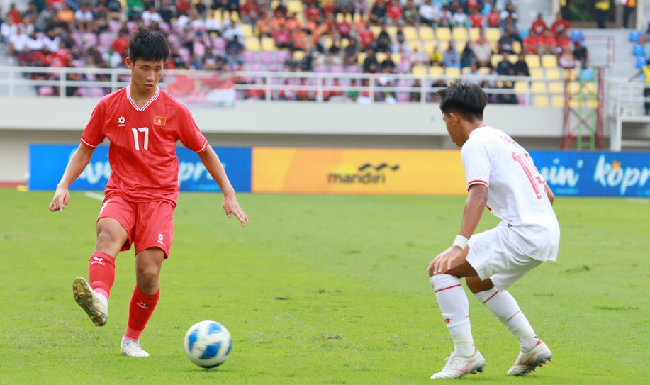 U16 Indonesia thi đấu chắc chắn và không còn tấn công quá nhiều. Họ dường như muốn chọn phương án bảo toàn tỉ số.
