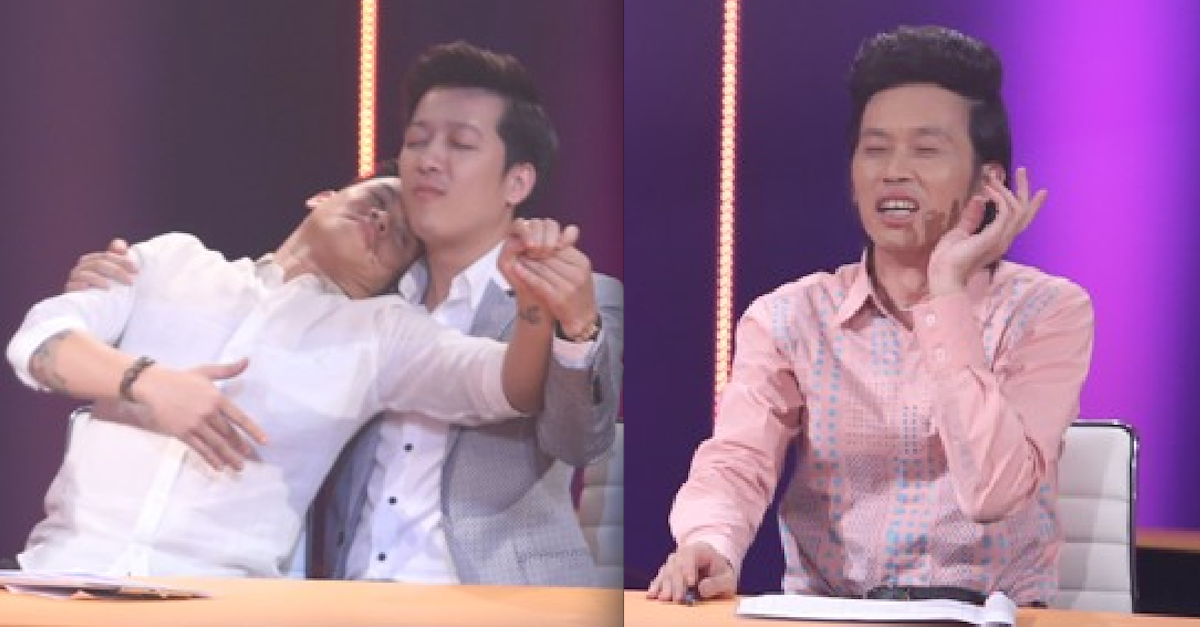 Hôn thê của Victor Vũ ngồi bên cạnh tỏ vẻ không thể chấp nhận được. Trong khi đó, “Ông Sáu Bảnh” và Mr. Đàm lại nhìn nhau hoảng hốt và thốt lên “Oh my god!”. Biện minh cho hành động lạ đời này của mình, Trường Giang cho biết: “John Huy đang hướng dẫn cho em động tác mới, phải cảm nhận nhau.”