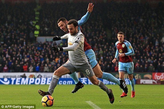 | 56' Đá phạt ở vị trí nguy hiểm cho Burnley khi Ashley Barnes bị Juan Mata phạm lỗi. |
